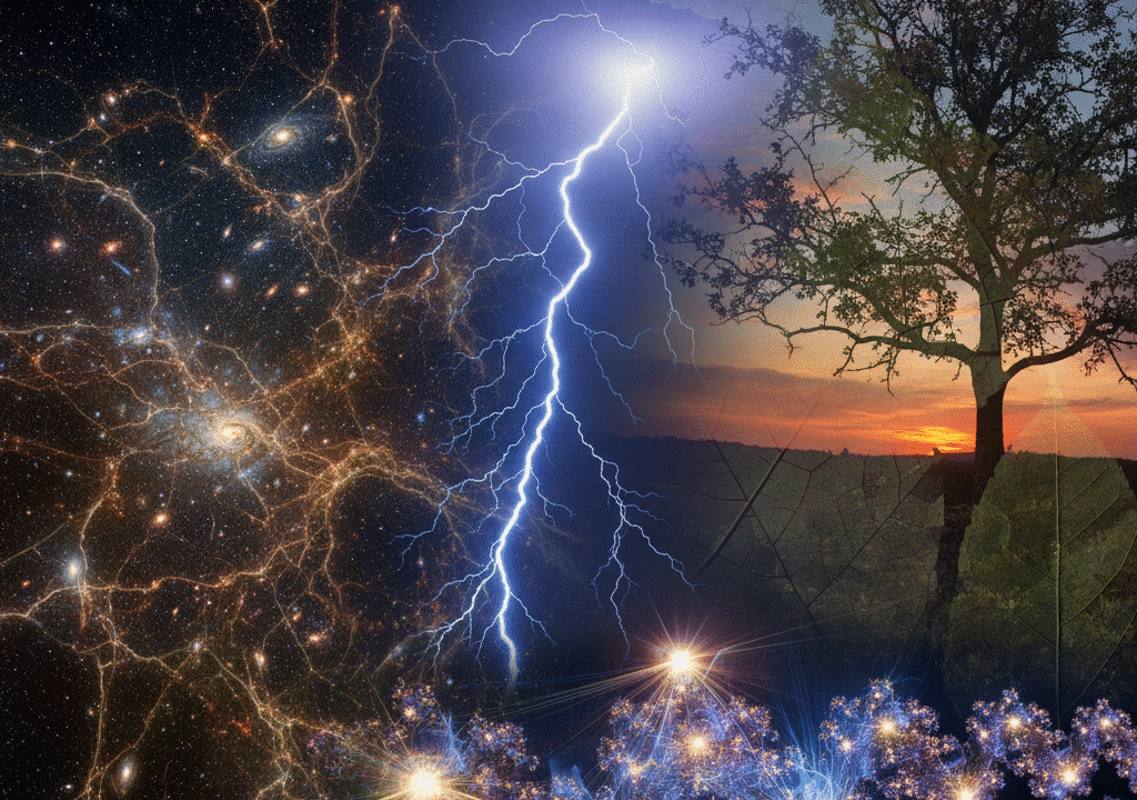 私たちが宇宙を見つめるとき、そこに見える銀河やフィラメントのパターンは、私たちが地上で見る木々の枝分かれや稲妻の形と驚くほど似ています。