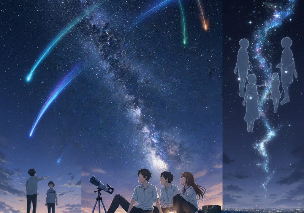 この物語の象徴である**「オオルリ流星群」**は、架空の流星群です。しかし、それが三人が初めて共に観測した、特別な意味を持つ存在として描かれています。彼らにとって流星群は、単なる天文現象ではなく、秘密基地であり、心の避難場所でした。